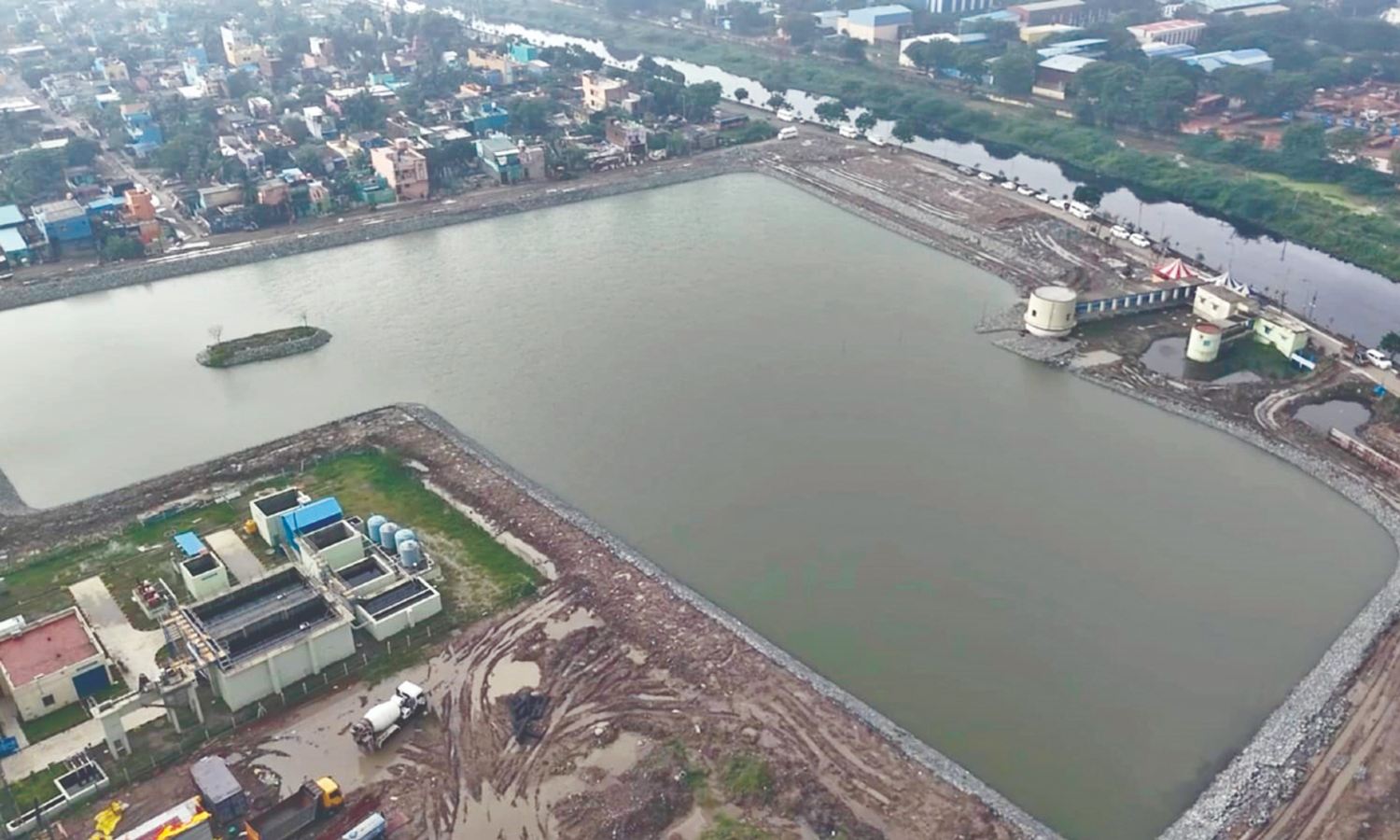 Work on the 18.44-acre Madhanankuppam pond has been completed under the Chennai Megacity Development Mission fund, including bund formation, a compound wall, walking track, children’s play area, women’s gym and high-mast lighting. Inside the Madras Race Club, the GCC has completed 6 ponds – 4 newly created and 2 restored – together providing 2.45 lakh cubic metres of storage.